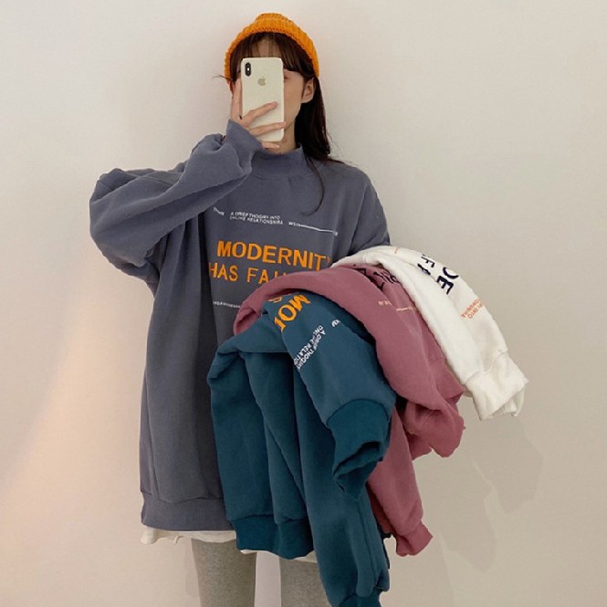 Áo cổ lọ size lớn in chữ tiếng Anh phong cách Hàn Quốc thời trang cho nữ free ship