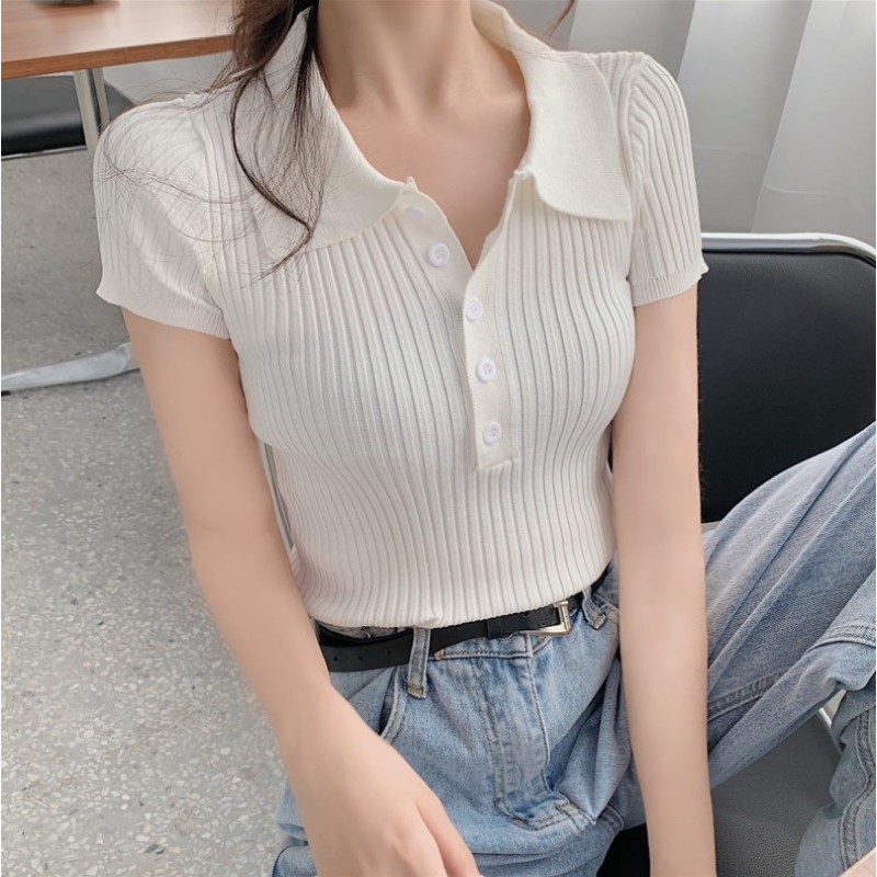 [ Mã 1010FASHIONSALE1 giảm 10K đơn 50K ] Áo Tay Ngắn Có Cổ Phong Cách Thời Trang Hàn Quốc Dành Cho Nữ