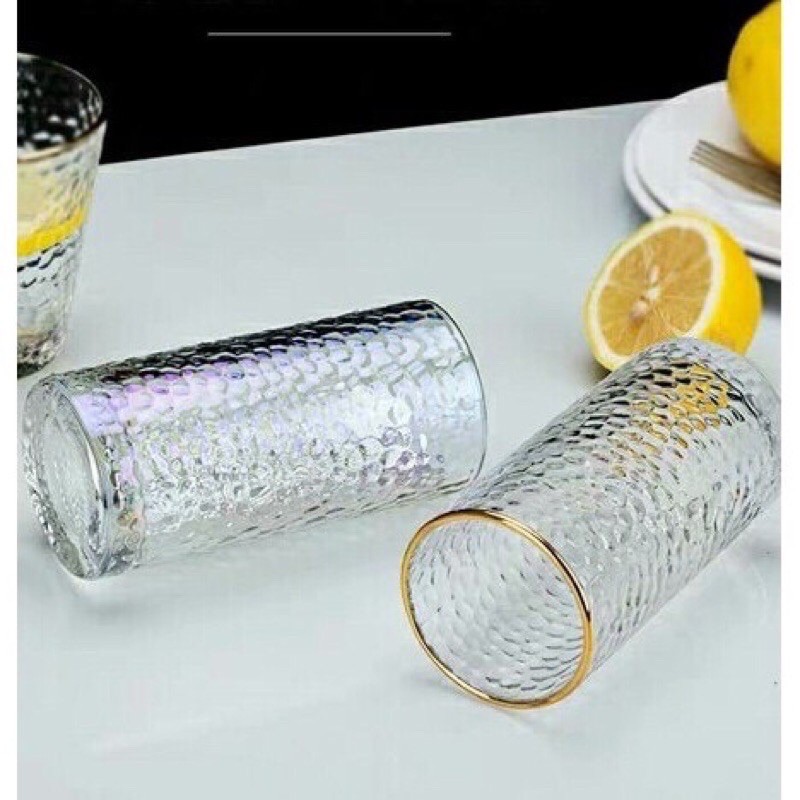 Cốc thủy tinh viền vàng vân họa tiết mặt trời Heodecor C01, ly thủy tinh cao cấp
